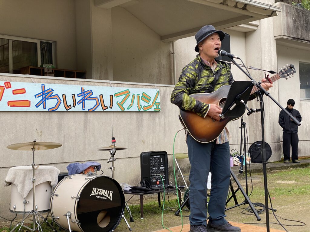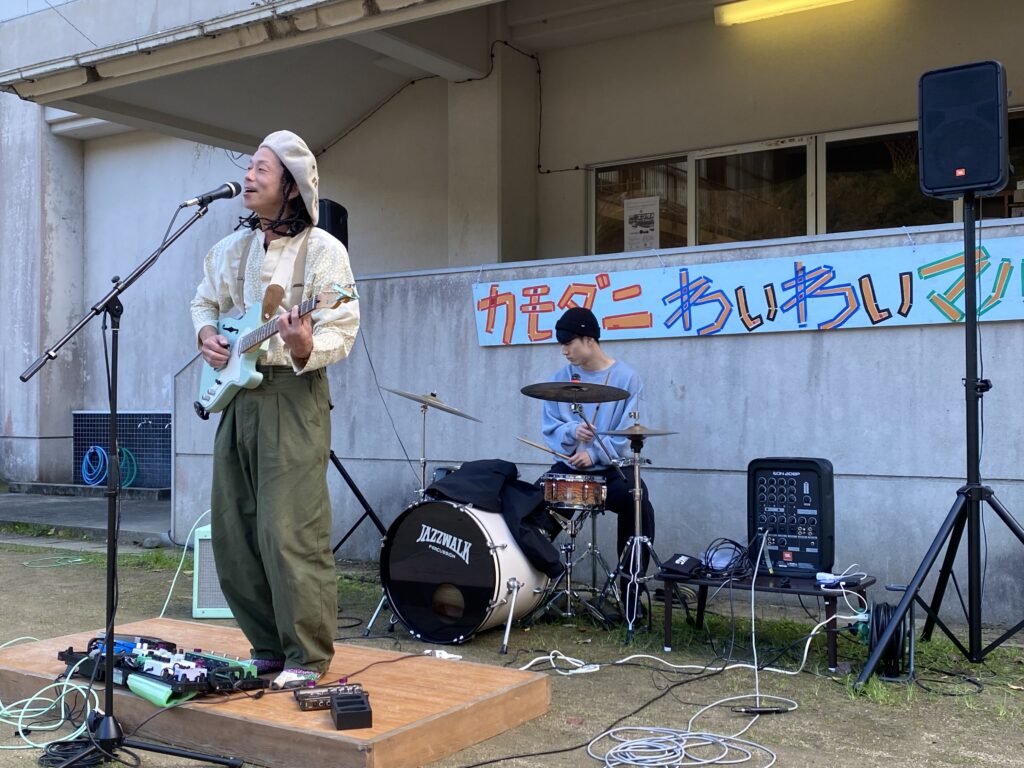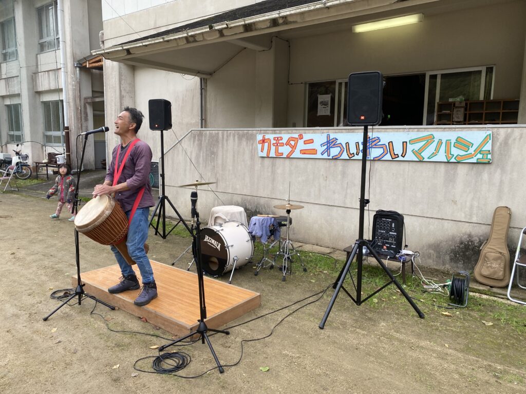 11月3日(月)文化の日に大井小学校をおかりしまして、カモダニわいわいマルシェという地域に根差した音楽と出店のマルシェを開催しました。出演は8組、出店は10店舗出店頂きまして来場者含めて総勢150人ほど参加して頂き大変大盛況でした。