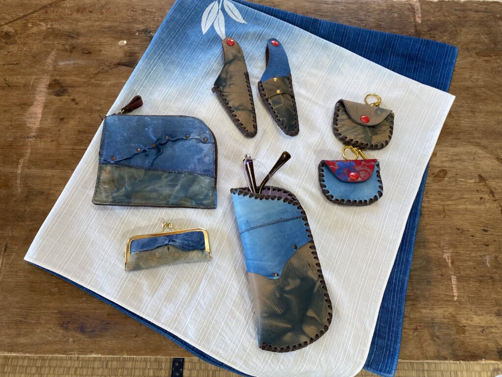 感謝しております。猟友会の猟師さんが害獣駆除で捕獲した鹿の皮をなめし、藍染したモノと竹細工をコラボさせて、新商品開発にチャレンジしています。