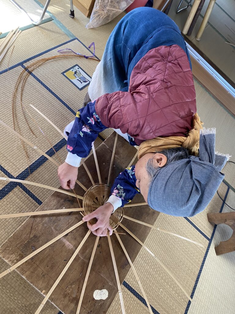 阿波晩茶の葉っぱを収穫する籠の製作中の様子